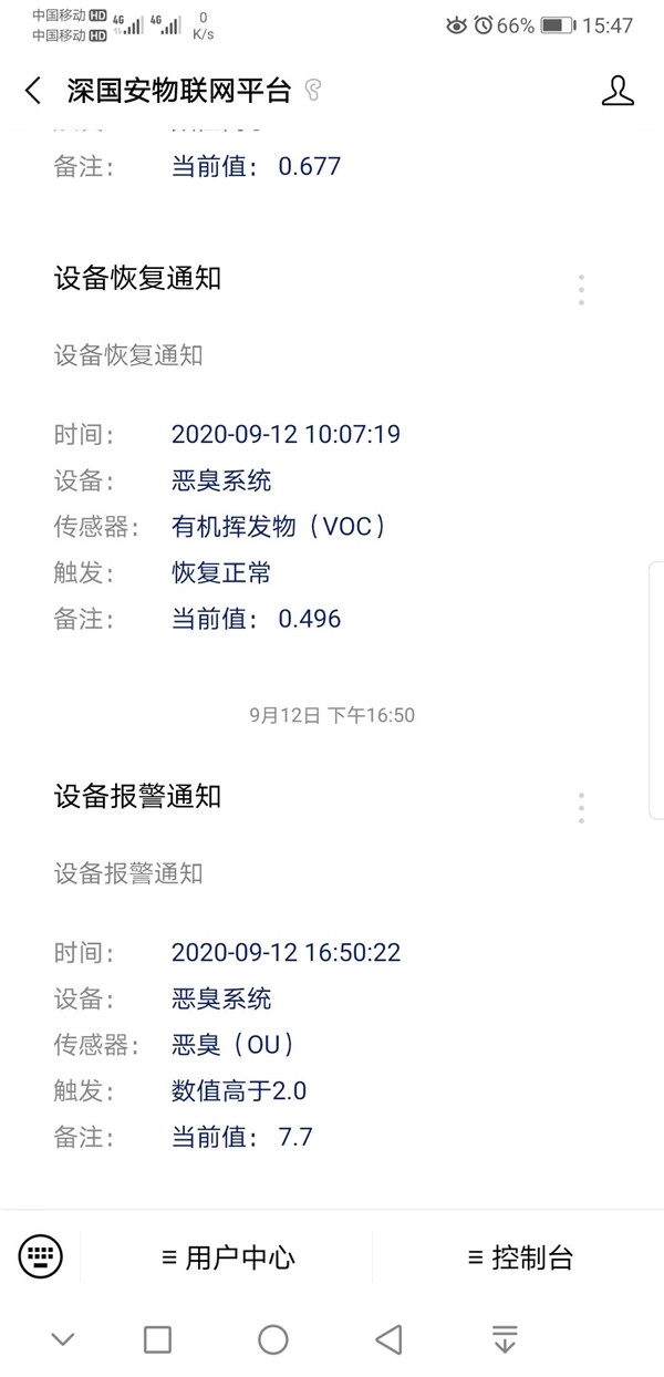 深國安物聯網平臺手機端實時查看,可以綁定微信,實時數據監控;超標后自動微信推送!平臺端,手機端,微信端三網融合打通!