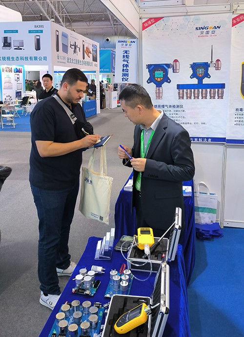 展會現(xiàn)場,還有很多國外客戶被深國安展示的先進(jìn)環(huán)境監(jiān)測技術(shù)與智能安防解決方案深深吸引,他們認(rèn)真聆聽工作人員的詳細(xì)介紹;或親自上手操作多款新品氣體檢測儀器,體驗(yàn)其精準(zhǔn)高效的檢測性能。