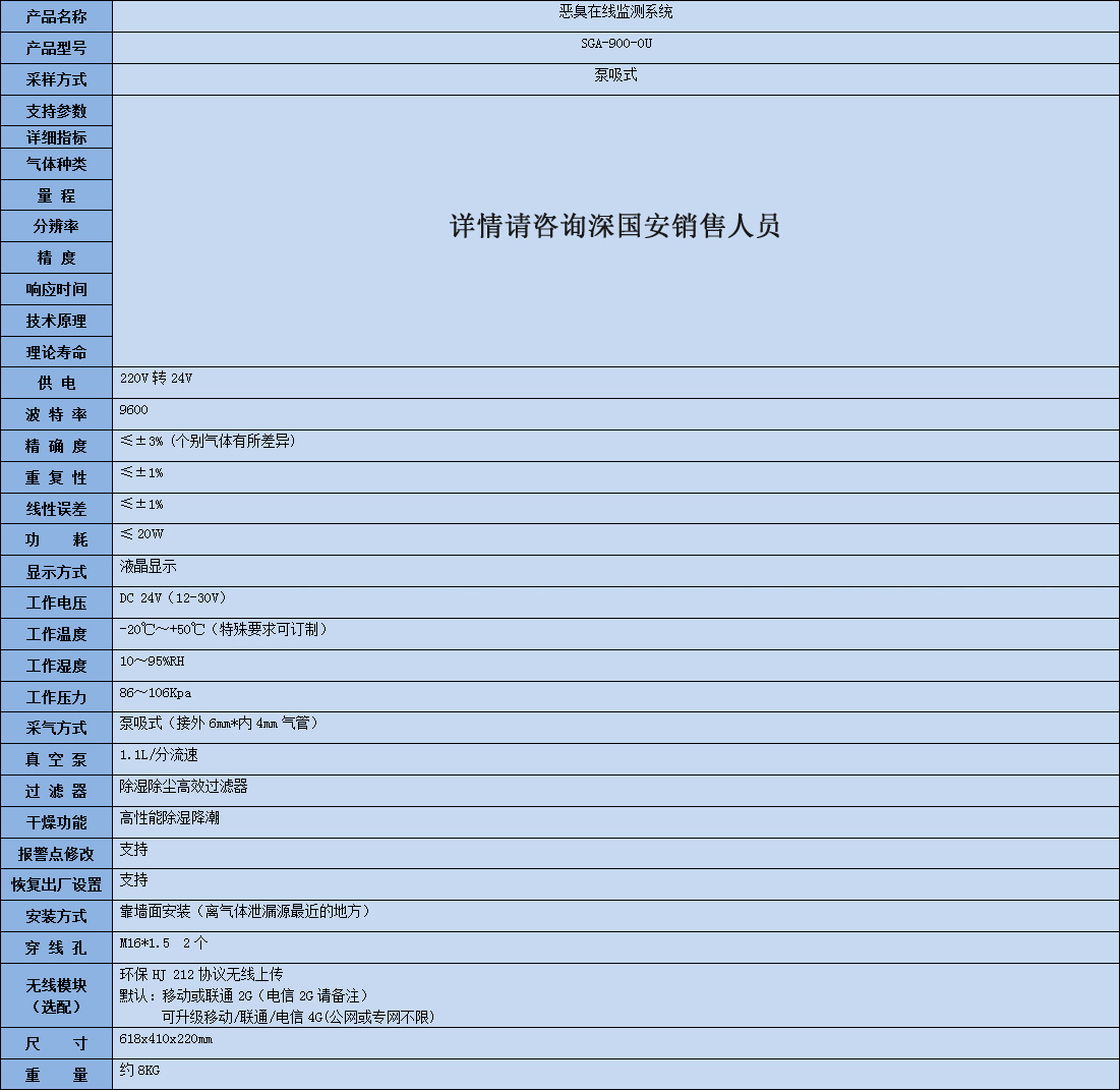 ※另有1000種氣體和量程可選,詳細請咨詢深國安銷售人員!