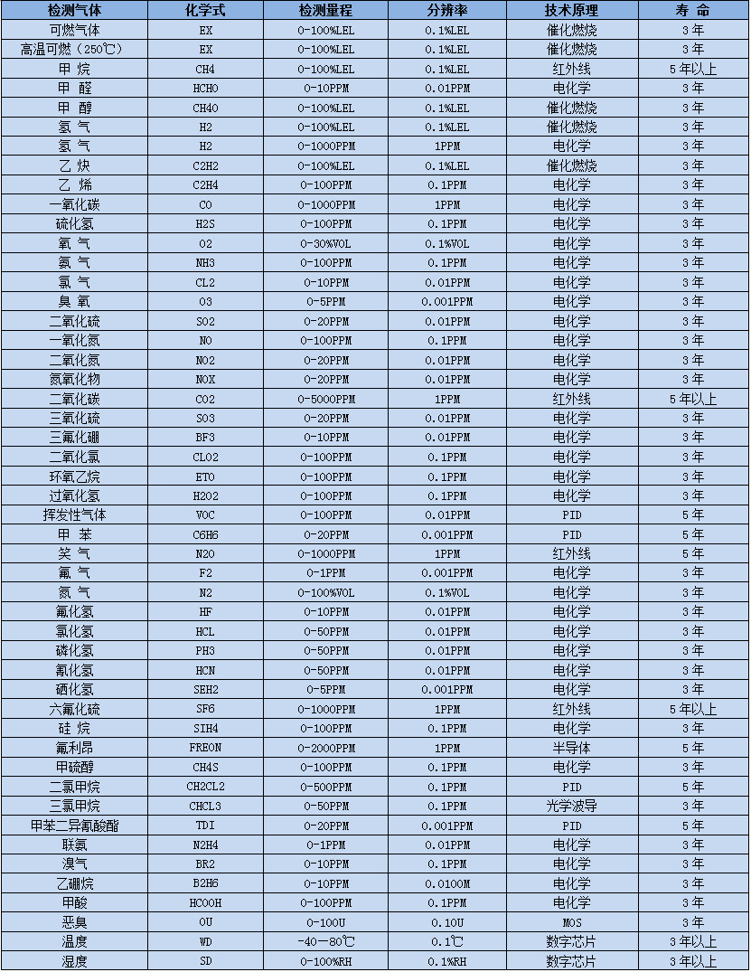 目標氣體可進行任意組合、技術原理不限、檢測范圍不限