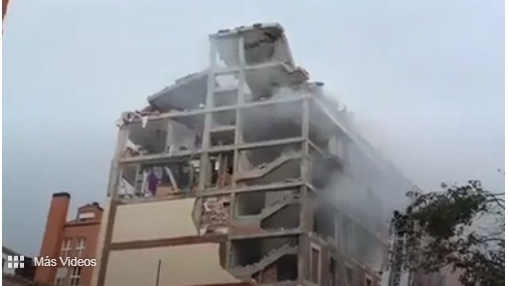 一聲巨大的爆炸聲摧毀了馬德里托雷多街區上一處8層的“老年之家”養老院,在方圓幾公里外都能感覺的到,目測至少5層樓以上的建筑被徹底摧毀,附近也有一些建筑和車輛受到影響,市政、警察及消防人員已經趕到現場疏散人群并封鎖了該區域。