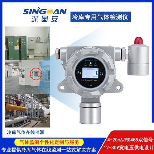 由于冷庫行業(yè)內(nèi)相對(duì)環(huán)境密閉,而氟利昂特性,比空氣質(zhì)量重,會(huì)下沉到地面累積,故機(jī)房氟利昂濃度越來越高,氧氣濃度越來越低,給維護(hù)人員進(jìn)入機(jī)房造成安全隱患。因此,深國安建議需要安裝氟利昂檢測(cè)儀、氧氣檢測(cè)儀等設(shè)備來實(shí)時(shí)監(jiān)測(cè)冷庫內(nèi)制冷機(jī)房氟利昂氣體和測(cè)量氧氣濃度兩大問題!