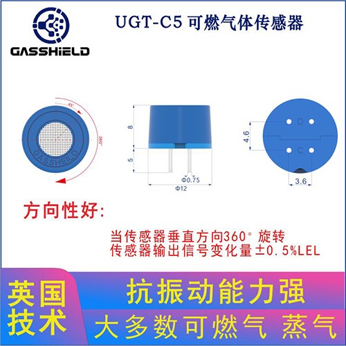 英國(guó)氣盾GASSHIELD公司研發(fā)的一款UGT-C5可燃傳感器,產(chǎn)品使用壽命設(shè)計(jì)標(biāo)準(zhǔn)5年,精確度3%范圍內(nèi),符合新國(guó)標(biāo)要求。UGT-C5可燃傳感器通過(guò)催化材料的改進(jìn)和技術(shù)創(chuàng)新,開發(fā)出了具有跨時(shí)代意義的智能傳感產(chǎn)品,與市場(chǎng)上所有催化燃燒可燃傳感器相比,UGT-C5可燃傳感器具有高精度、長(zhǎng)壽命和超穩(wěn)定性,在抗中毒測(cè)試中的突出表現(xiàn)令人印象深刻。