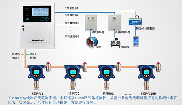 探頭數量多于8臺,建議選擇總線制。這樣可以減少布線難度和布線成本,所有探頭通過一根電纜線接入主機,理論最多接收256臺探測器通訊信號;氣體檢測儀數量低于8個,可以選擇分線制,每個探頭通過單獨電纜接入主機。
