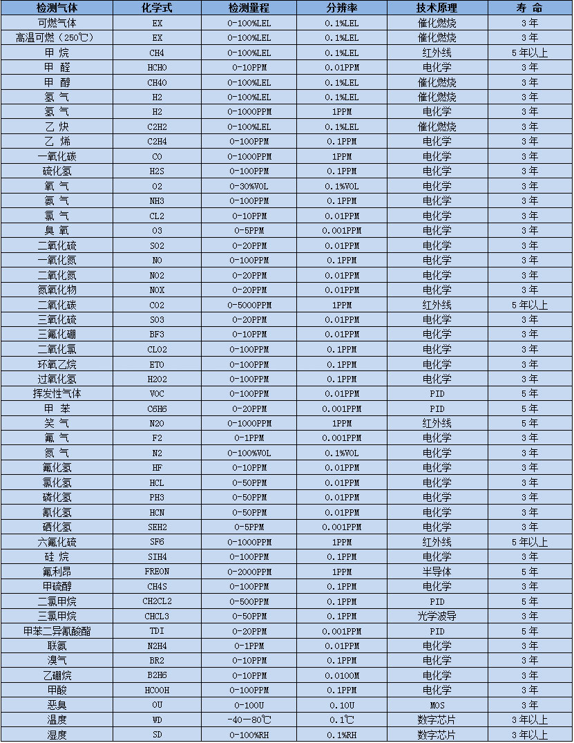 ※另有1000種氣體和量程可選,詳細(xì)請咨詢深國安銷售人員!